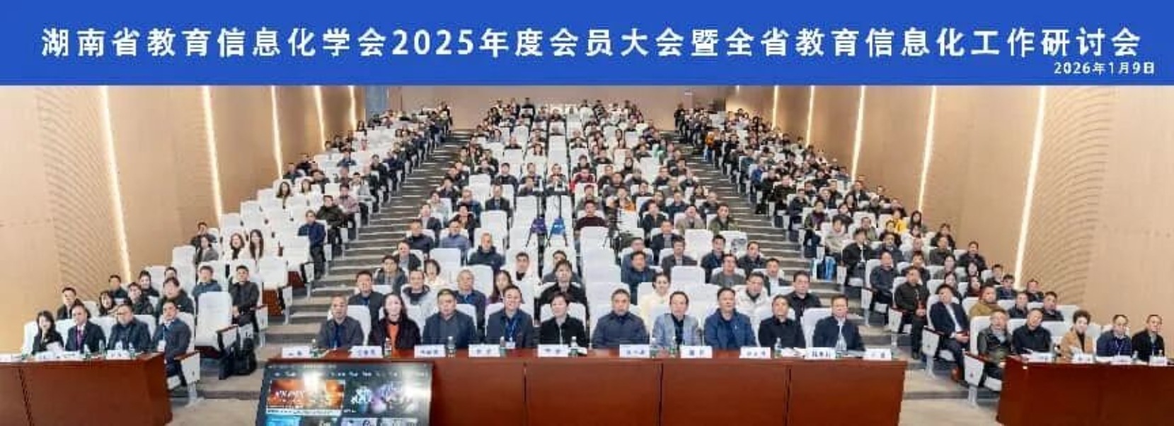 2026年1月9至10日,湖南省教育信息化学会2025年度会员大会暨全省教育信息化工作研讨会在岳麓山实验室隆重召开。大会以“智赋湘教,数启新程”为主题,系统总结学会年度工作成效,深入研讨人工智能赋能教育高质量发展的实践路径,科学谋划“十五五”教育信息化发展规划。本次大会由湖南省教育厅指导,湖南省教育信息化学会主办,湖南农业大学承办,来自全省250余家单位,400余位教育行政部门、高校、职业院校、中小学校领导,专家学者及企事业代表参会,共商教育数字化转型大计。