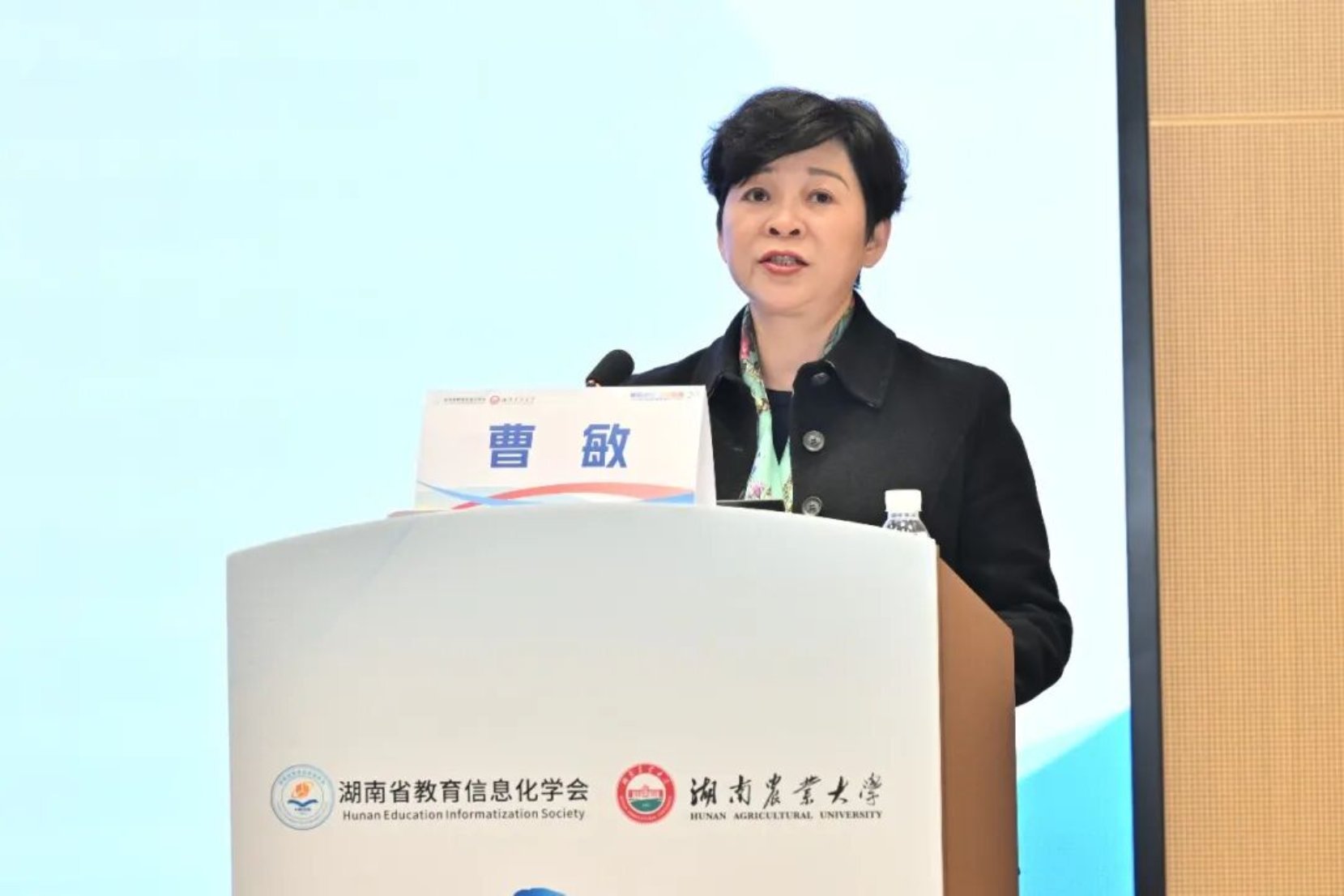 曹敏充分肯定了学会以往的工作成绩,并就2026年全省教育数字化重点工作提出三点要求:一是扎实推动信息系统整合与数据共享;二是深入实施人工智能赋能教育行动;三是全面深化国家智慧教育平台应用。她强调,省教育厅将持续优化教育数字化发展顶层设计,大力开展“教育数字化转型发展专项行动”,系统推进教育数字化战略在湖南落地实施,力争在未来3至5年内推动湖南教育数字化发展进入全国前列。