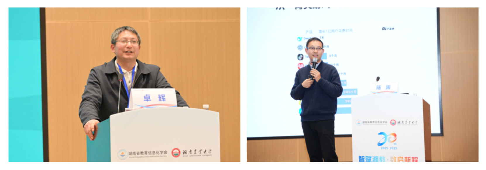 湖南农业大学信息与网络中心主任卓辉分享《数智芯农大,共创耕未来——湖南农业大学“十五五”信息化规划思考》,国家超算长沙中心常务副主任陈果分享《网络互连定义AI算力极限》,永州市新田县教育信息中心主任刘庆分享《人工智能与教育创新的思考和探索》,湖南科技职业学院副校长许彪分享《高职教育AI智能体应用创新实践》,湖南第一师范学院现代教育技术与网络中心副主任姜明芳分享《技术与服务双轮驱动:数智融通下服务门户与应用实践》, 湖南省委网信办二级调研员谷平华分享《人工智能时代的数据安全及治理》等热点议题,现场思想碰撞激烈,成果丰硕。