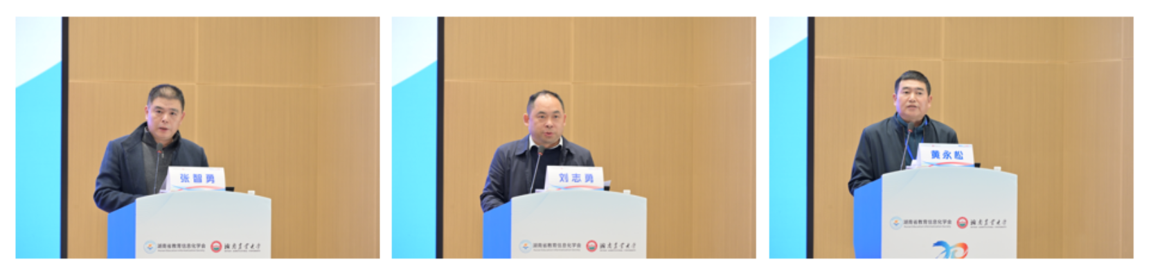 下午会议进入密集的学术报告与交流环节。湖南科技职业学院信息化办公室主任、人工智能学院党总支书记刘志勇,湘潭大学网络与信息中心副主任胡洪波、长沙民政职业技术学院信息处处长雷军环、湖南工业职业技术学院图书情报信息中心主任郑志凌分别主持。